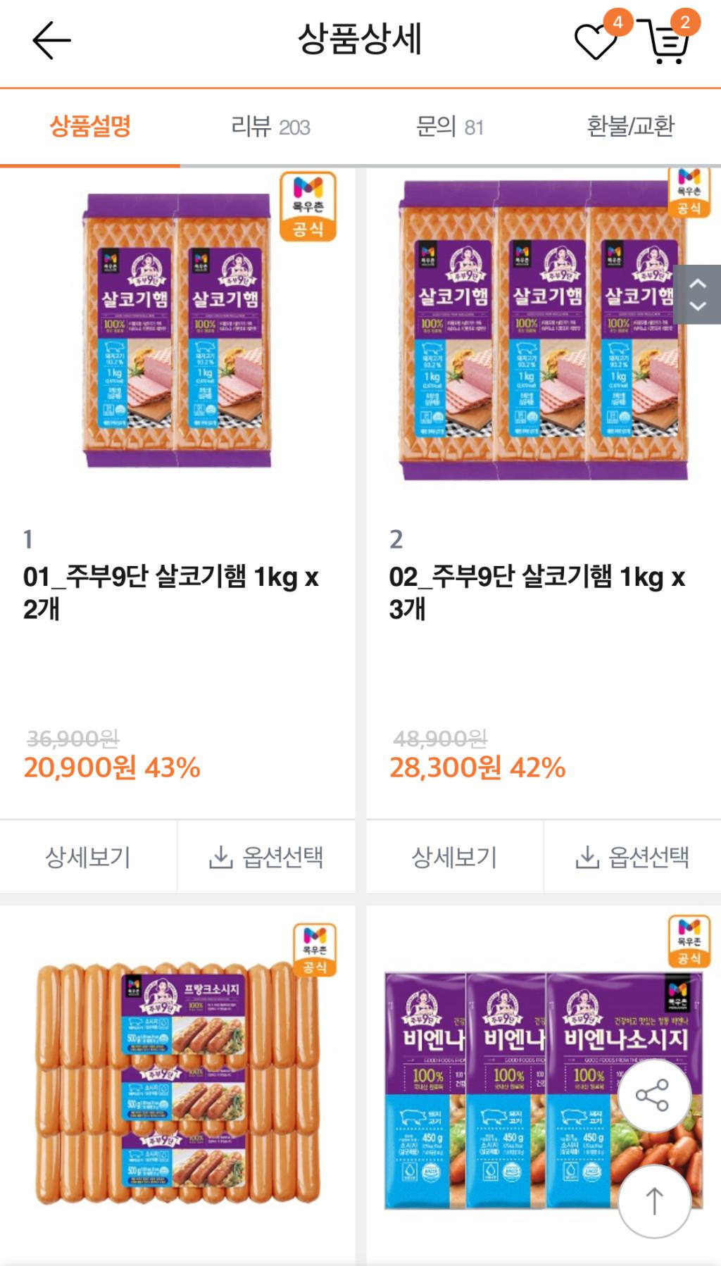 [티몬] [목우촌] 주부9단 살코기햄 1kg x3개 22,923원 / (무배)