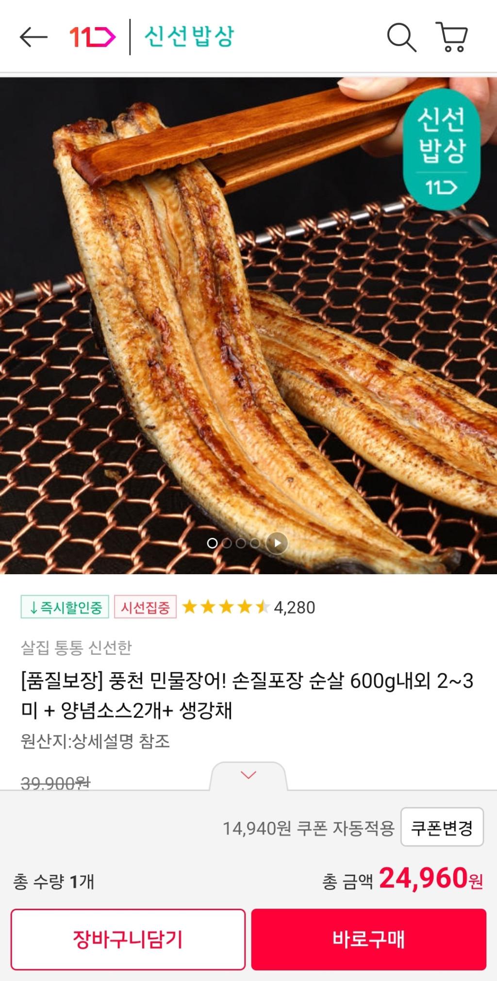 [11번가] 자포니카 민물장어 1kg (손질 후 600g)(소스,생강채포함)