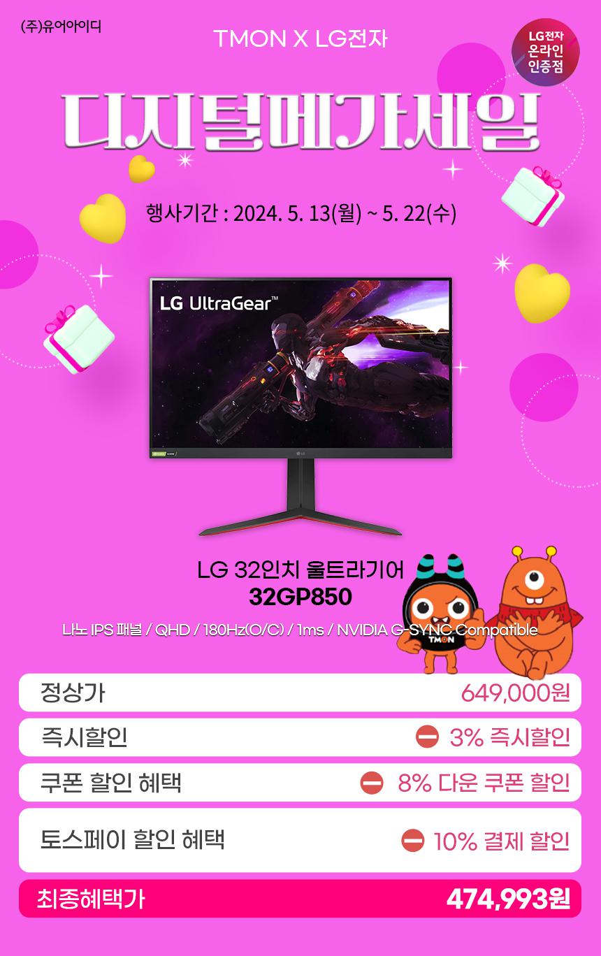 [티몬] [티몬] LG 32인치 울트라기어 게이밍모니터 32GP850 나노IPS! 디지털메가세일…