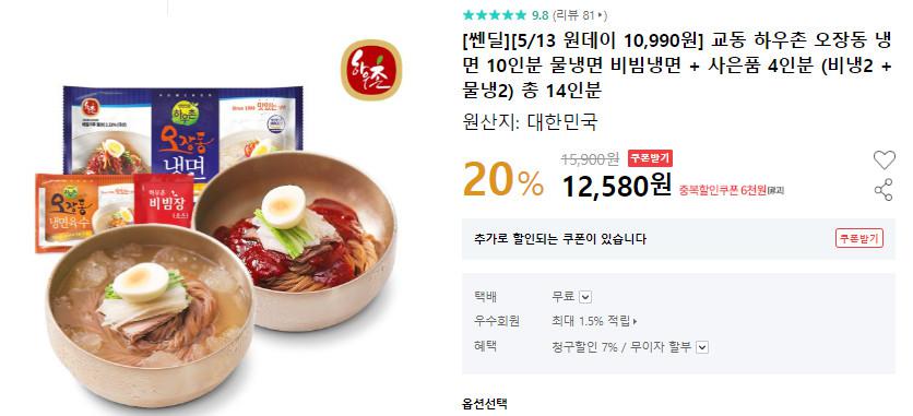 [인터파크] 교동 하우촌 오장동 냉면 10인분 물냉면 비빔냉면 + (비냉2 + 물냉2) 총 14인분