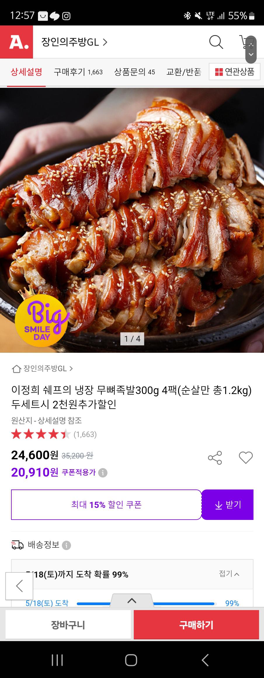 [옥션] 이정희 쉐프 냉장 무뼈족발 300g 4팩