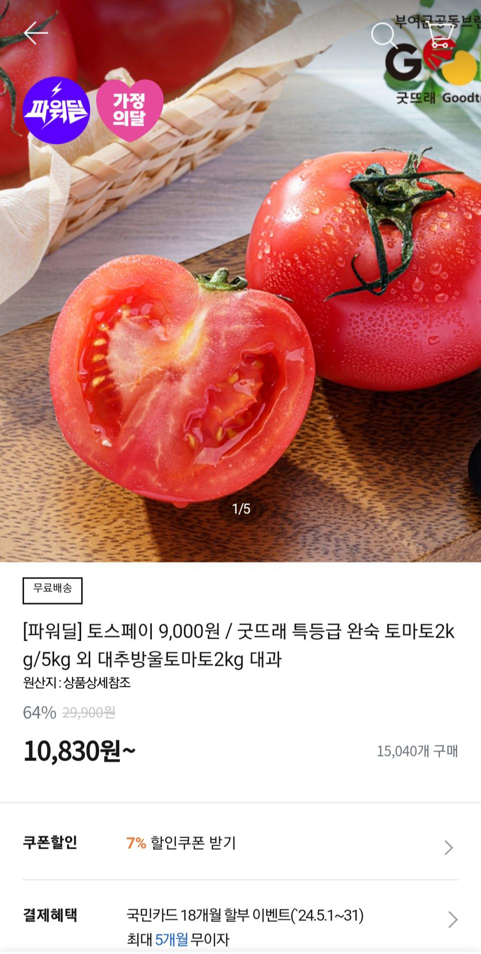 [티몬] 굿뜨래 특등급 완숙 토마토 2kg/5kg