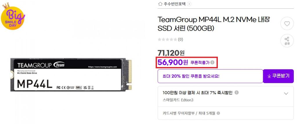 [G마켓] 빅스 팀그룹 MP44L Gen4 500GB