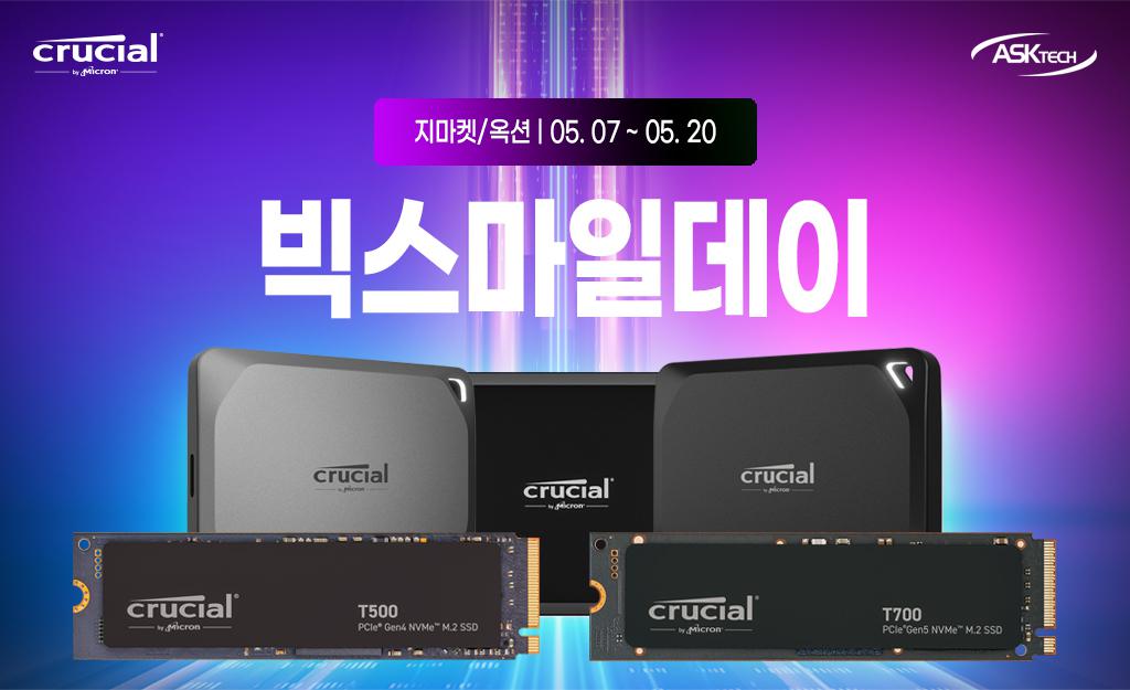 [G마켓] G마켓/옥션] 빅스마일데이 마이크론 크루셜 SSD 행사안내[T500 2TB 189,00…