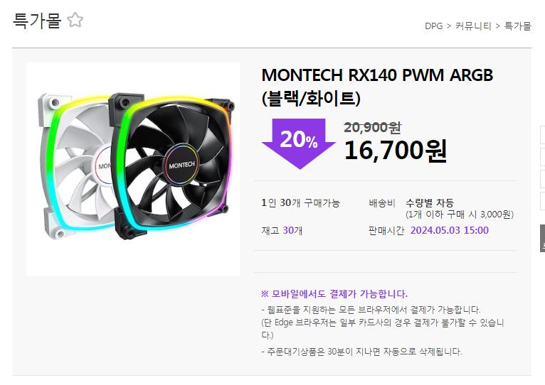 [기타] [다나와DPG] MONTECH RX140 PWM ARGB (블랙/화이트)