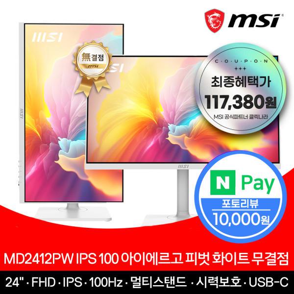 [11번가] 24인치 IPS 100Hz 피벗 화이트 MSI 모니터 (최종가 117,380원)