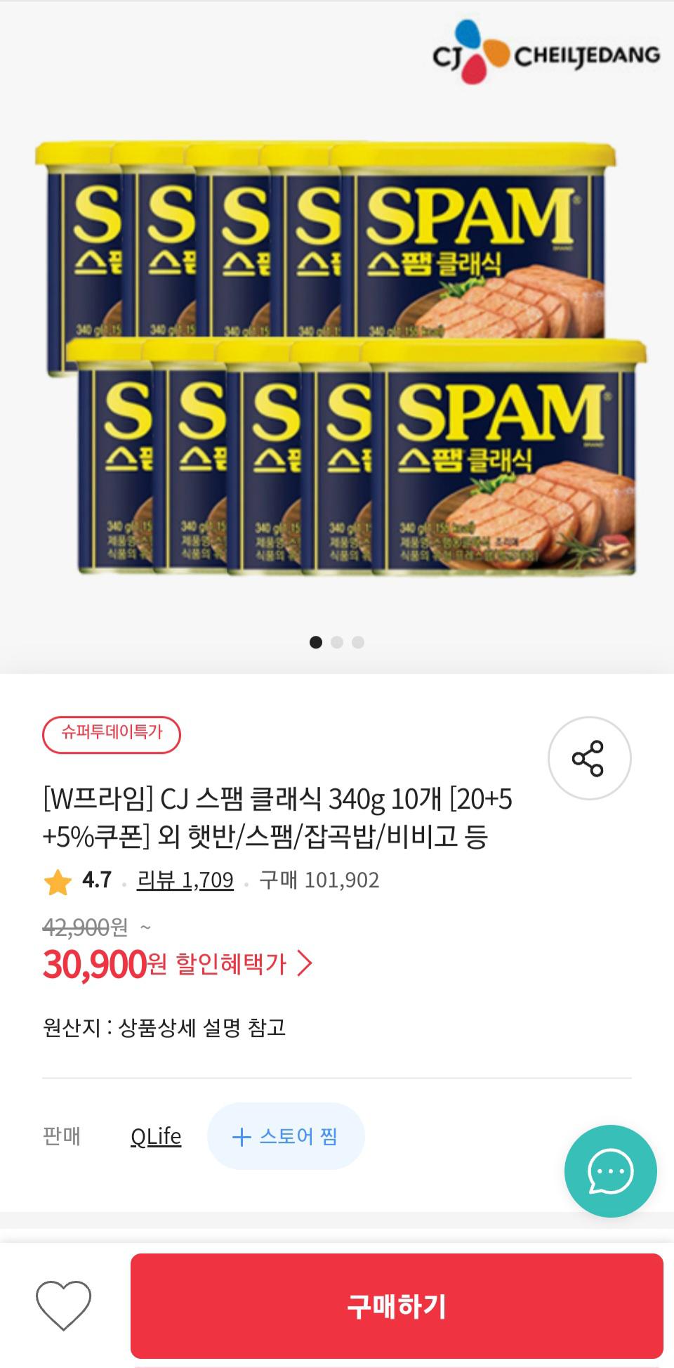 [위메프] [위메프]CJ스팸 클래식 340g10개