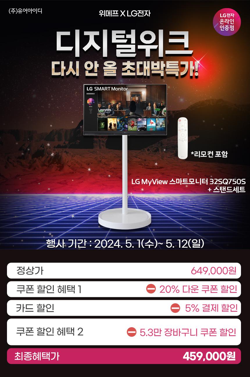[위메프] [위메프] LG MyView 스마트모니터 32SQ750S + 화이트 스탠드세트~! 다시…