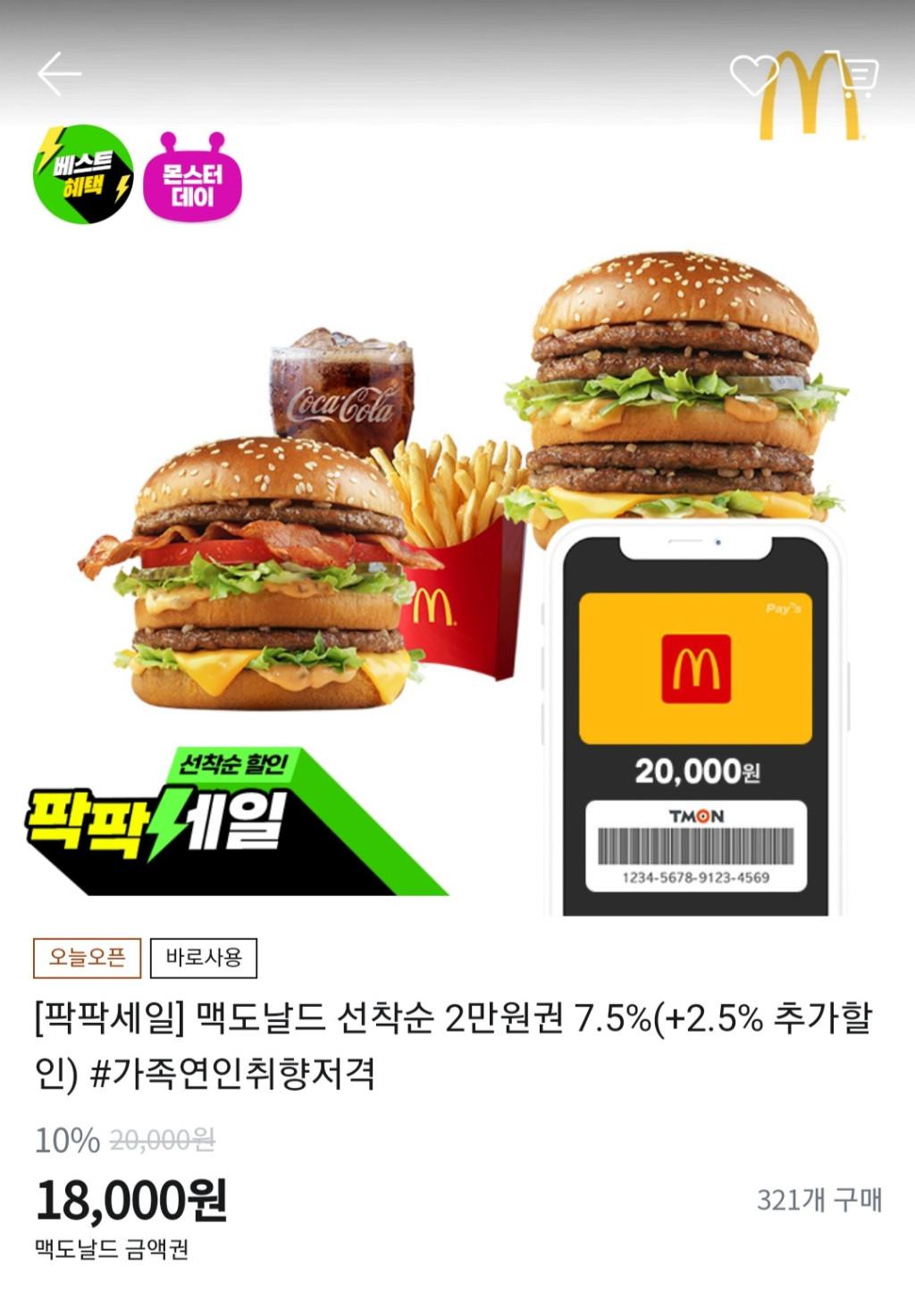 [티몬] 맥도날드 2만 금액권 10% 할인