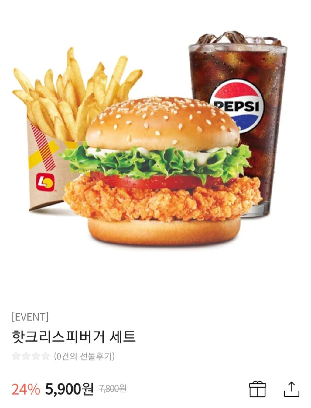 [카카오톡딜] 롯데리아 핫크리스피 버거세트