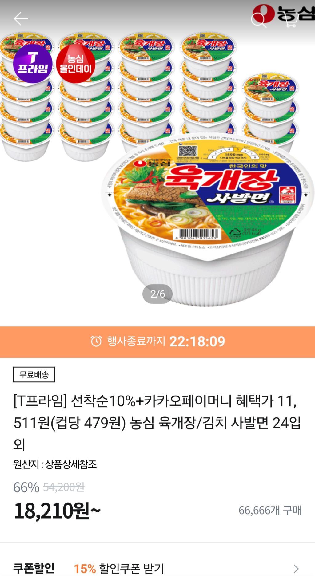 [티몬] 농심 육개장/김치 사발면 86g 24입 카카오페이머니 (무배)