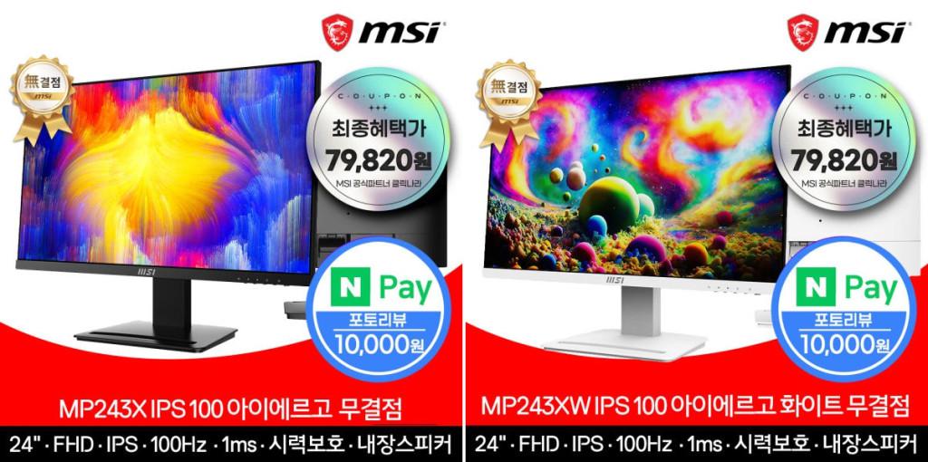 [11번가] 24인치 IPS 100Hz 화이트/블랙 MSI 모니터 (최종가 79,820원)