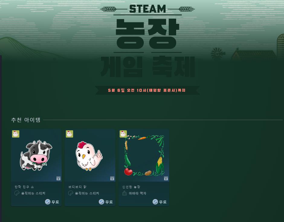 [기타] 스팀 농장 게임 축제 아이템 3종 무료