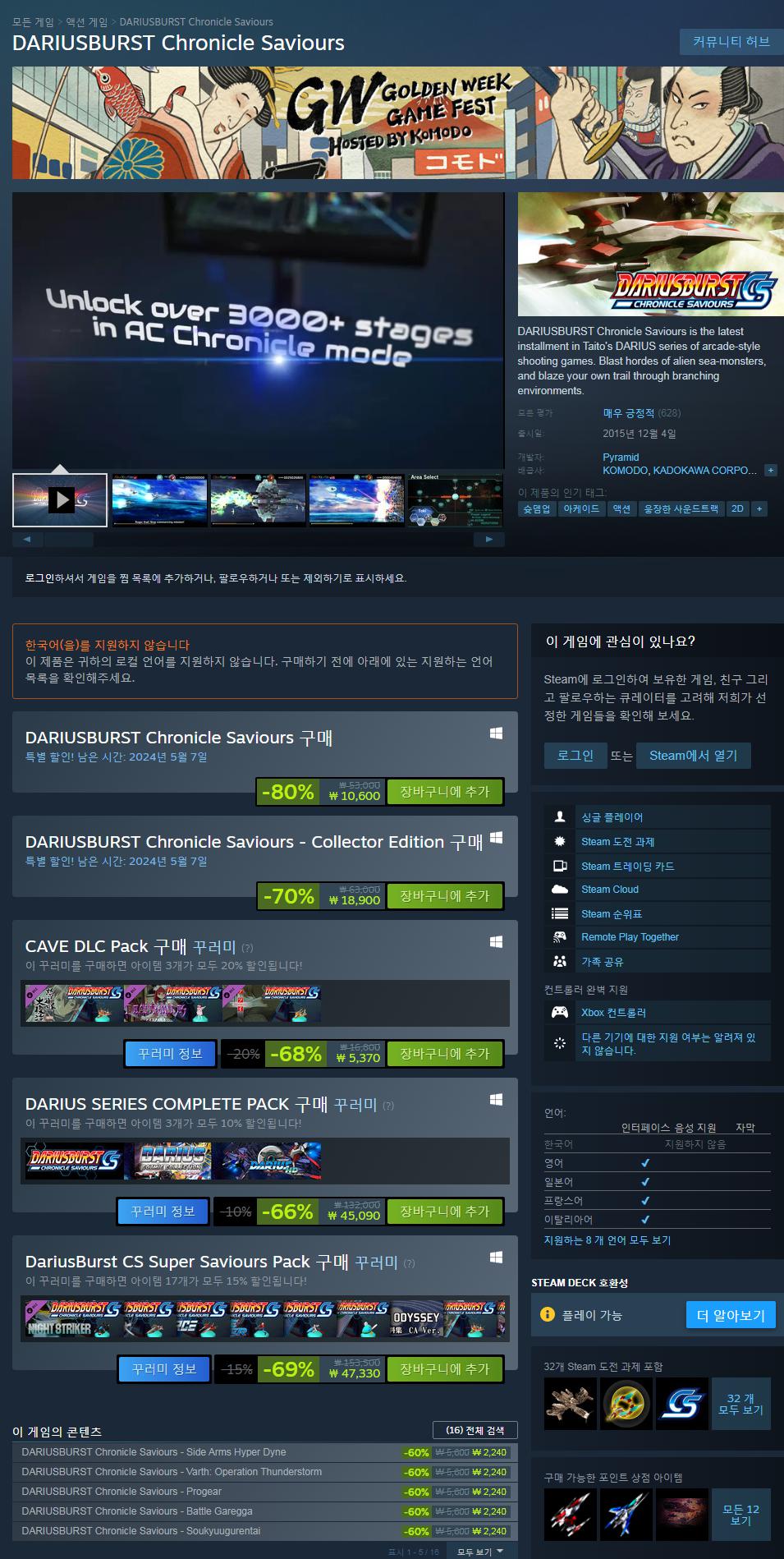 [기타] 스팀 DARIUSBURST Chronicle Saviour