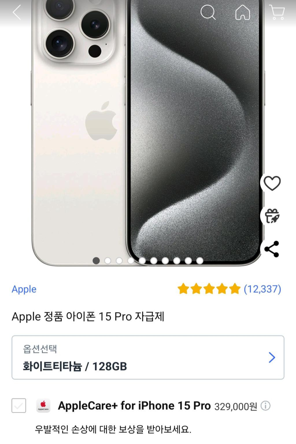 [쿠팡] 애플 아이폰 15Pro 자급제 화이트티타늄 128GB