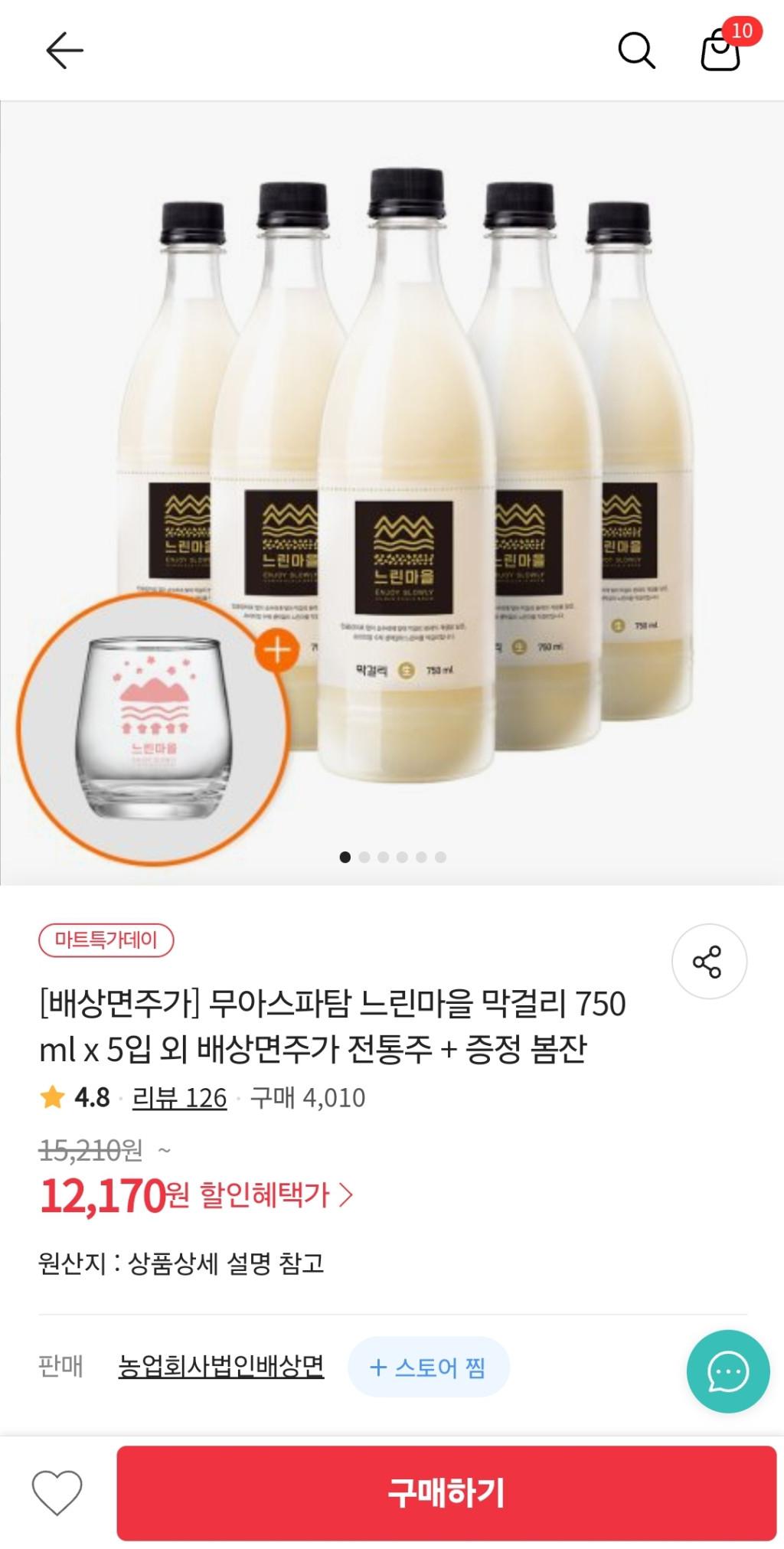 [위메프] 느린마을막걸리 5입+봄잔 전용잔 무배