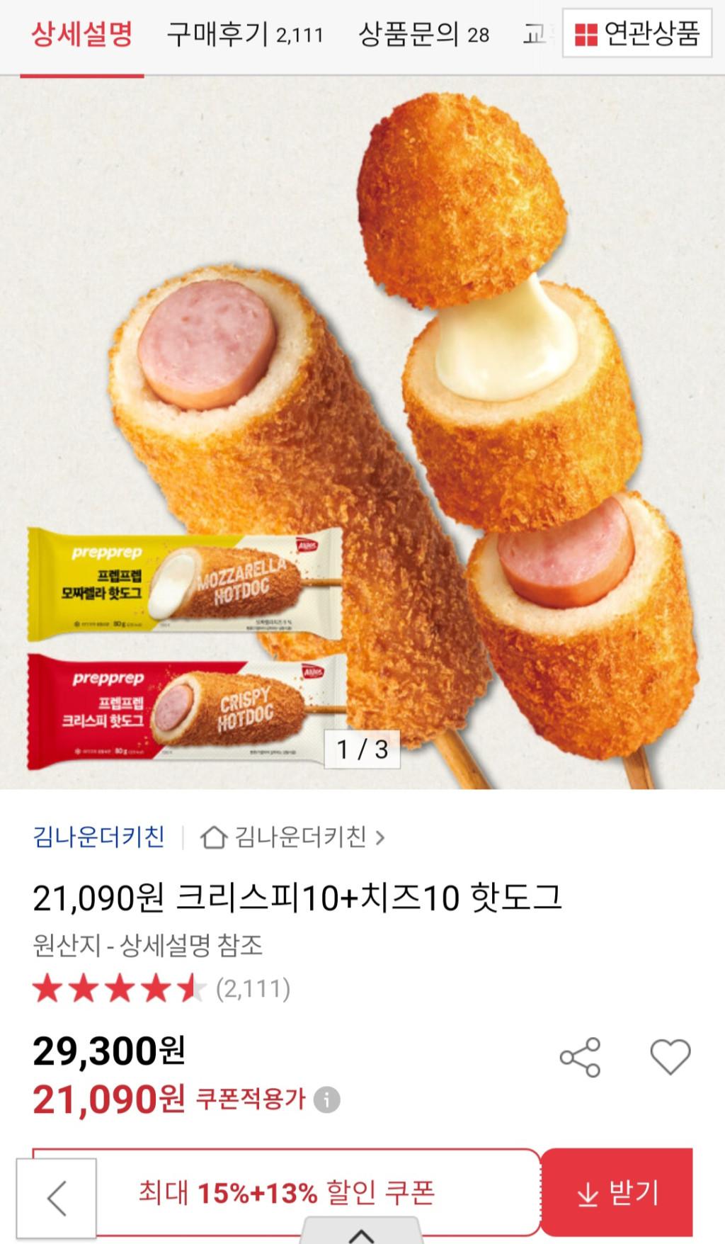[옥션] 프립프랩 핫도그 (크리스피10+치즈10)