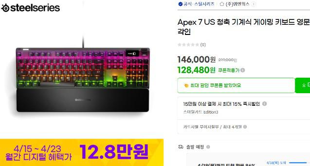 [G마켓]스틸시리즈 Apex 7 US 청축 게이밍 키보드