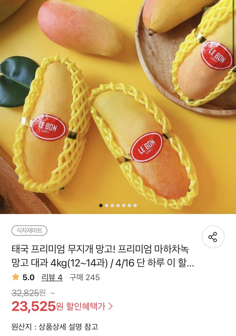 [위메프] 태국 마하차녹 무지개망고 대과 4kg (12~14과)