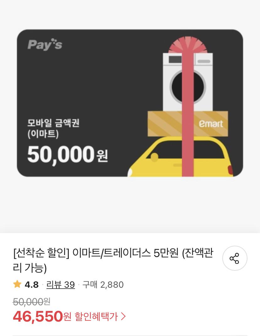 [위메프] 이마트/트레이더스 5만원 (잔액관리 가능)