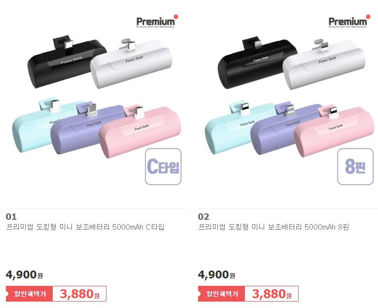 [위메프] 도킹형 5000mAh 미니 일체형 보조배터리(C타입, 8핀)(무배)