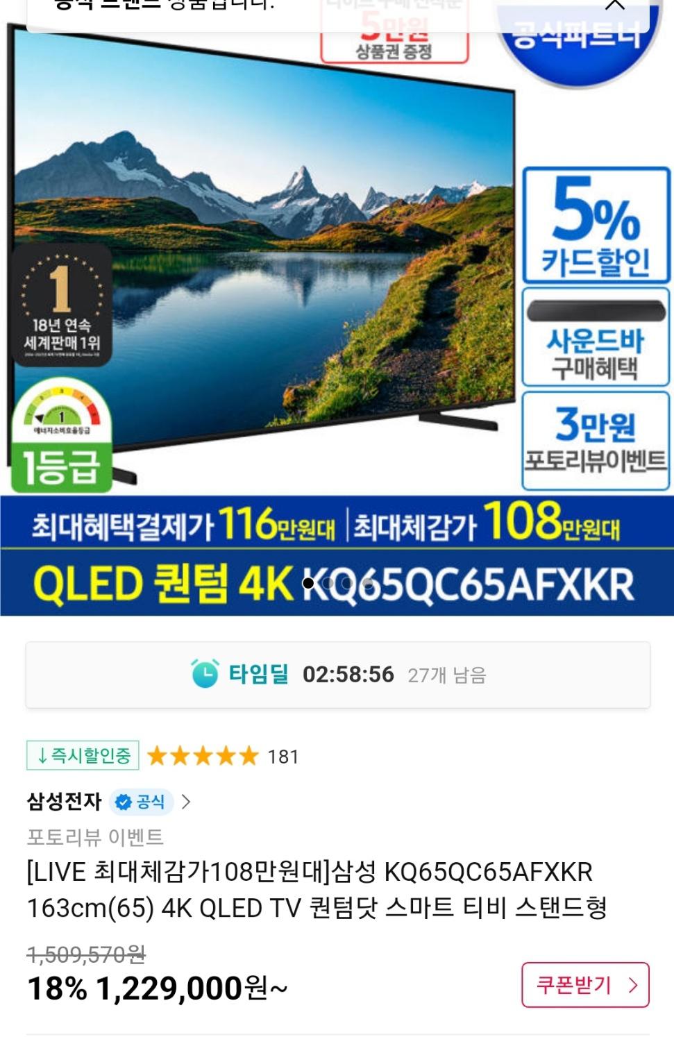 [11번가] 삼성 KQ65QC65AFXKR 163cm(65) 4K QLED TV