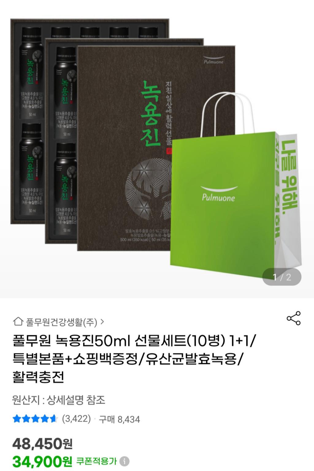 [G마켓] 풀무원 녹용진 50ml 선물세트 (10병) 1+1