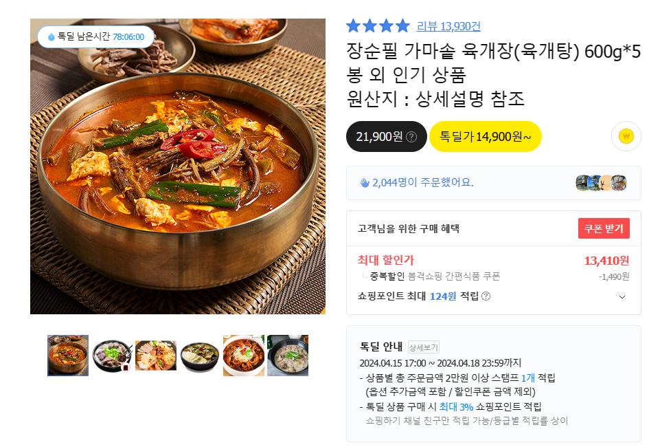 [카카오톡딜] 장순필 가마솥 육개장 5팩 (무배)