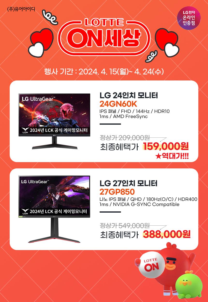 [롯데온] LG 24GN60K 역대가 갱신,27GP850 가성비 울트라기어 게이밍모니터!행사안내 …