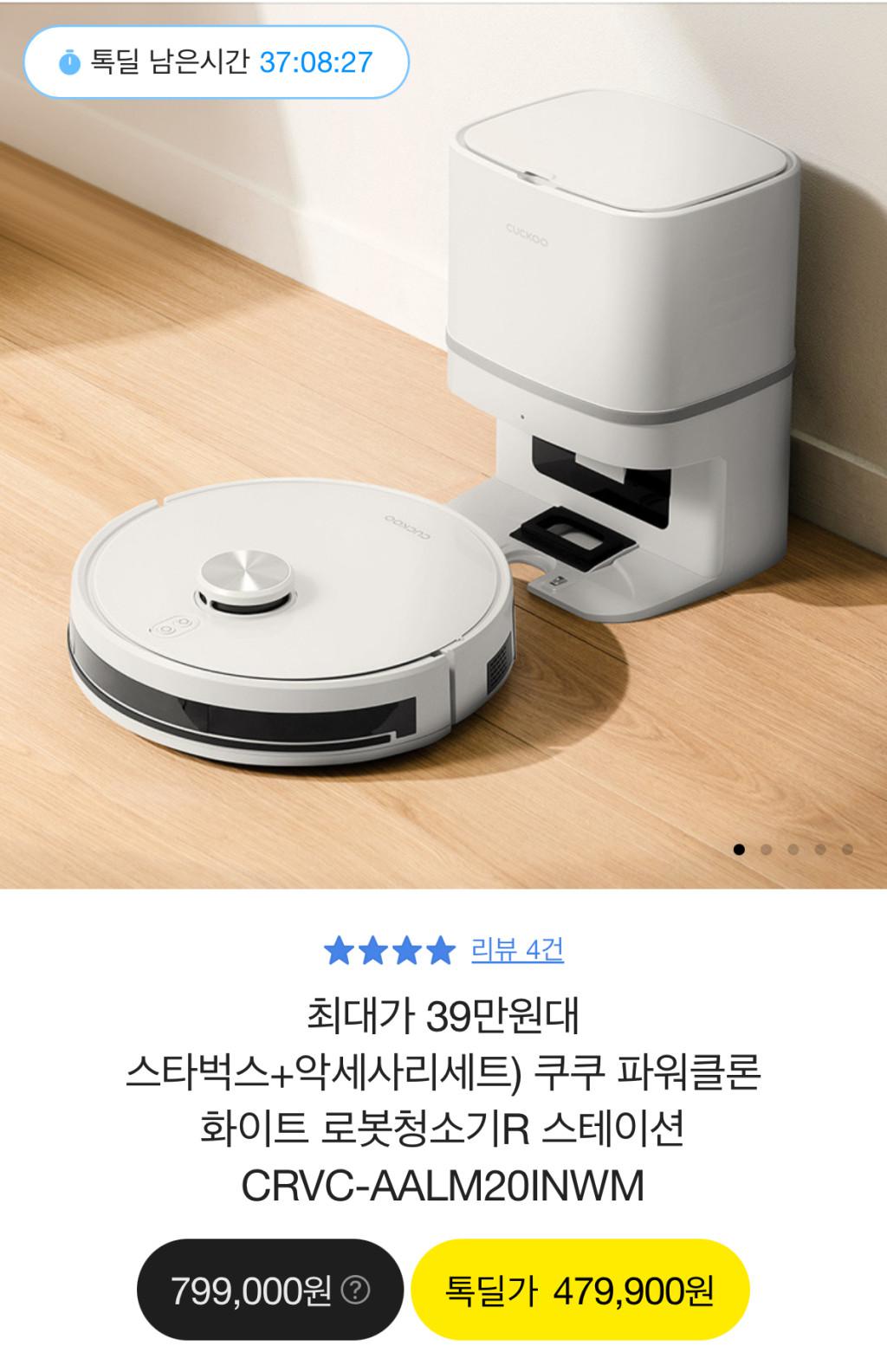 [카카오톡딜] 쿠쿠 파워클론 로봇청소기 카카오페이 추가할인