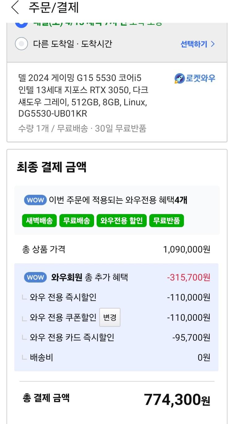[쿠팡] 쿠팡] DELL 게이밍노트북 G15 5530 (774,300 / 무료)