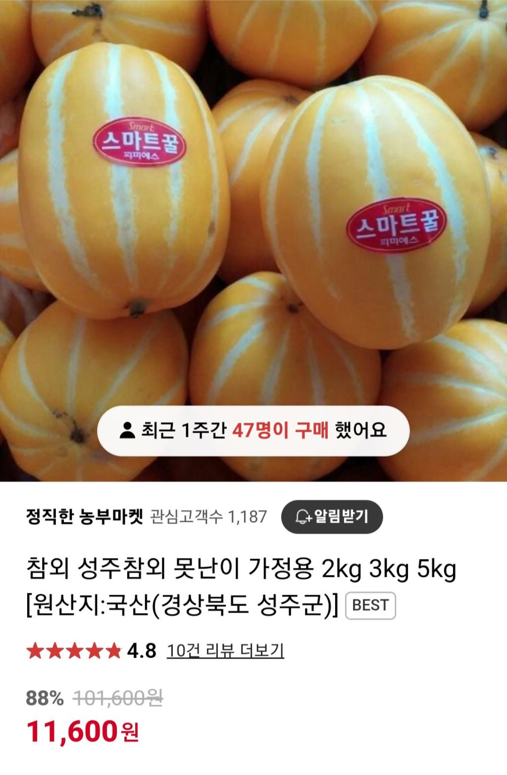 [네이버] 성주참외 가정용 2kg 무료배송