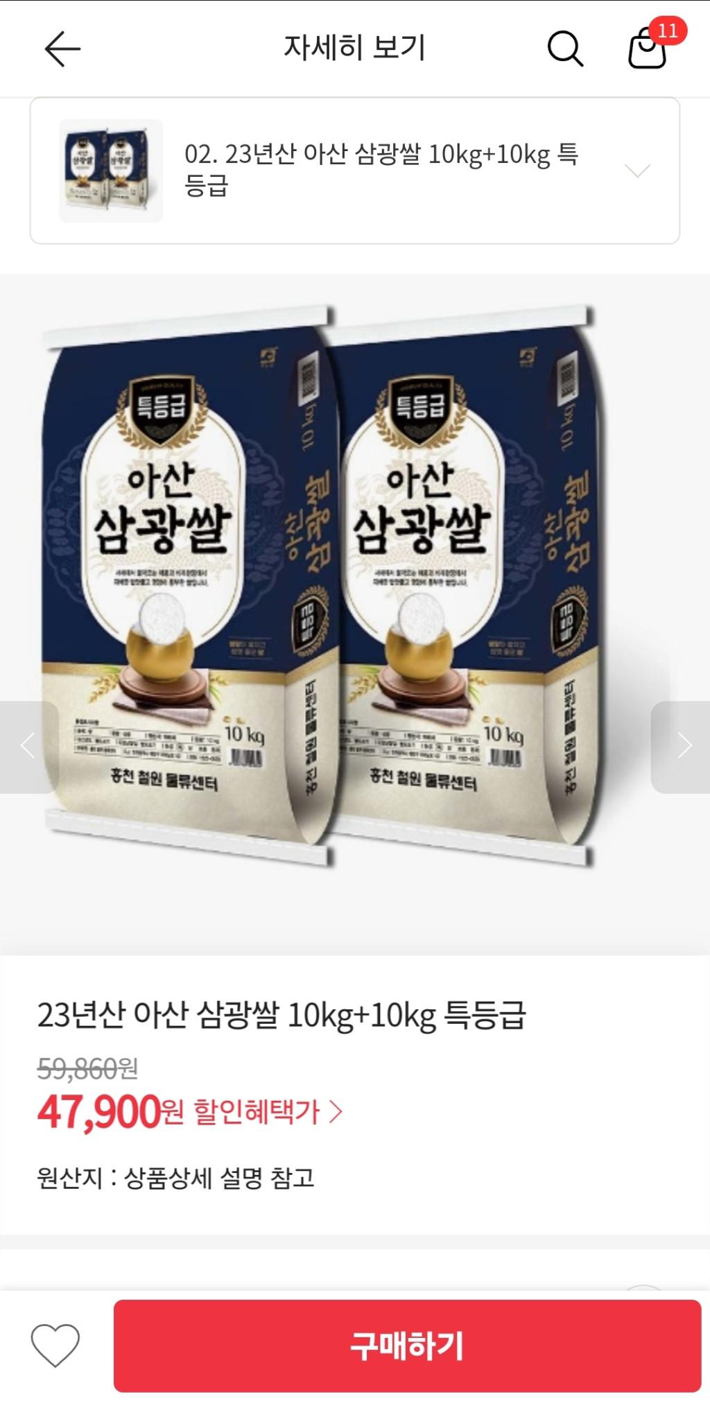 [위메프] 아산 삼광쌀 10kg+10kg 특등급