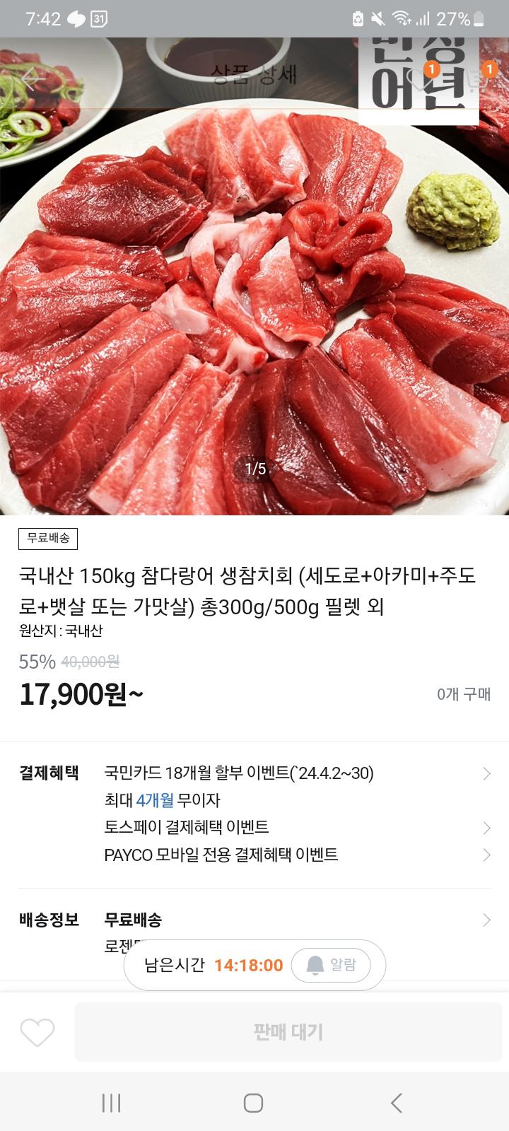 [티몬] 국내산 참다랑어 생물참치 300g 필렛 외 종류많음(무배)