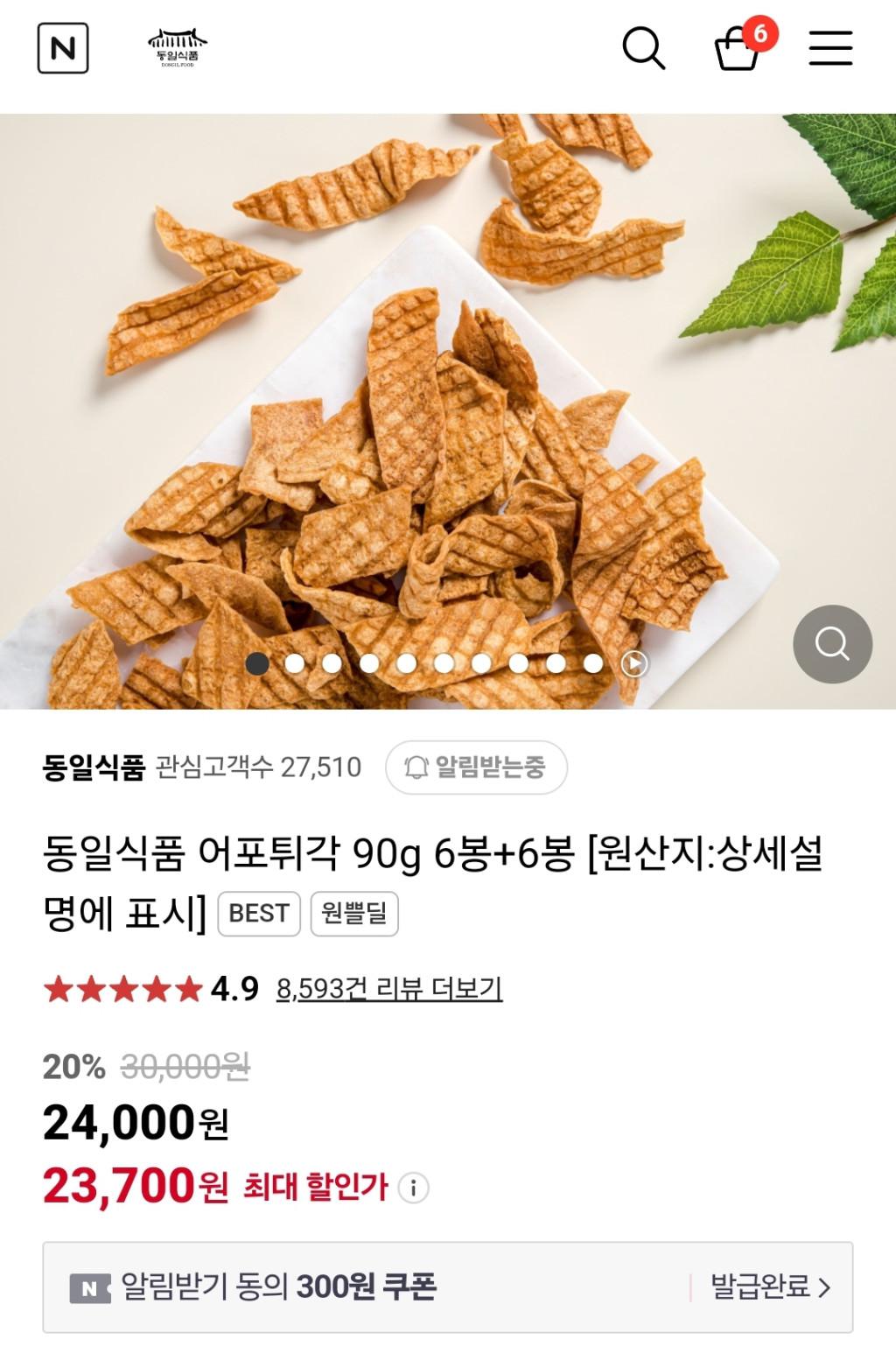 [네이버] 동일식품 어포튀각 90g 6봉+6봉(무배)