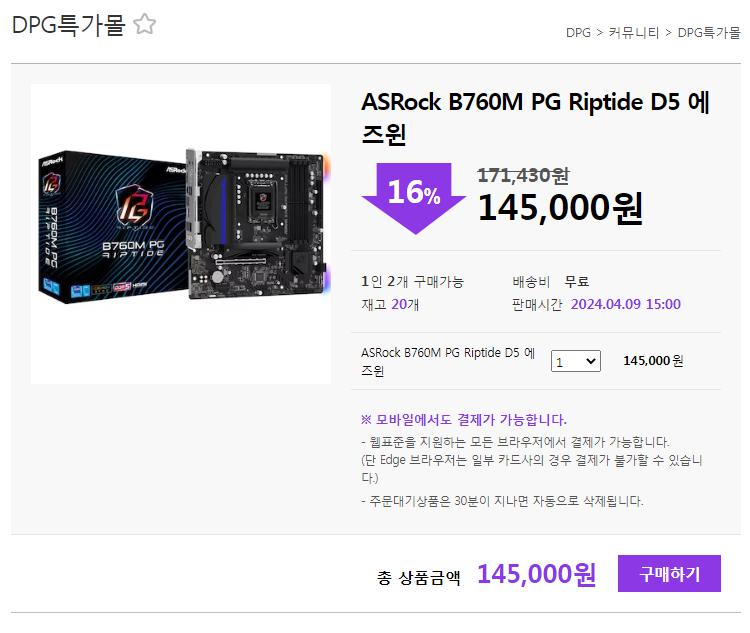 [기타] [다나와DPG] ASRock B760M PG Riptide D5 에즈윈