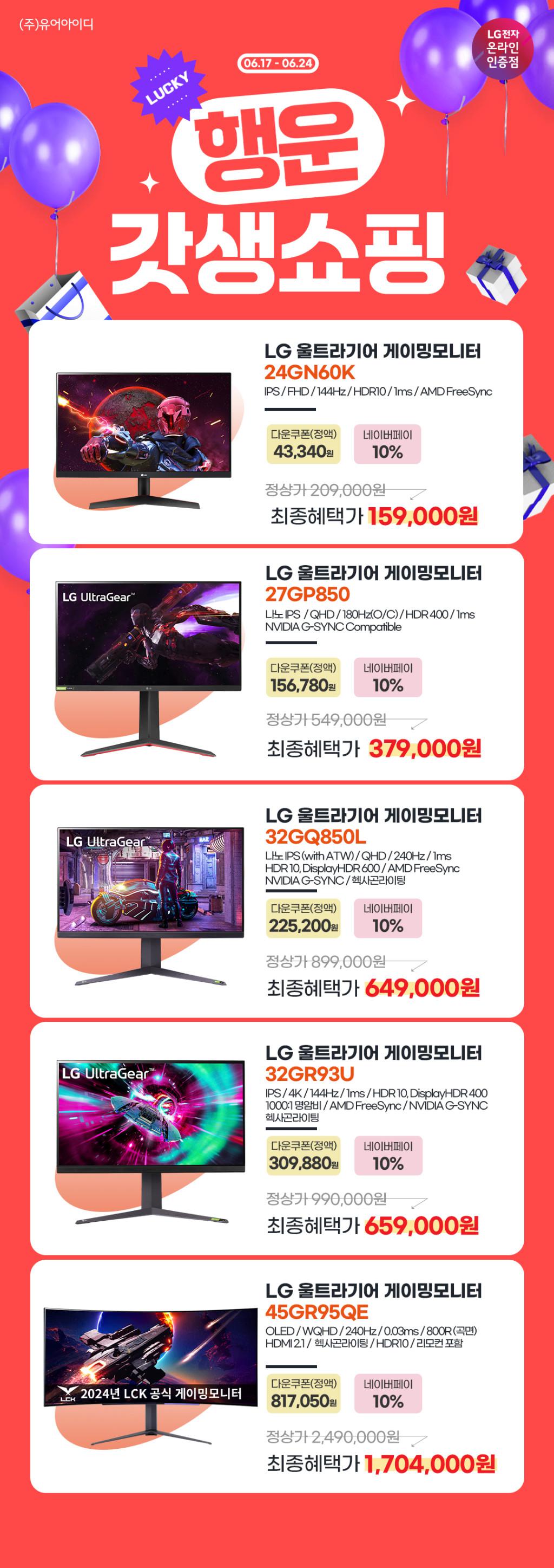 [롯데온] LG 24~45인치 게이밍모니터 울트라기어 5주년 기념 갓생쇼핑!(6/17~24) 라스…