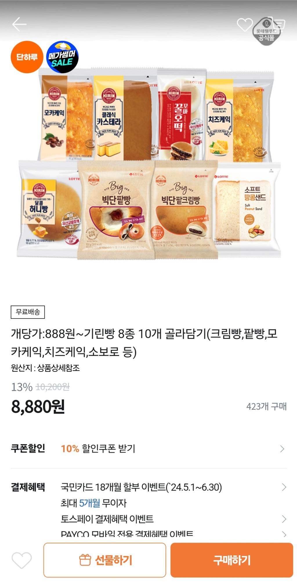 [티몬] [티몬] 기린빵 10종 8880원(무배)