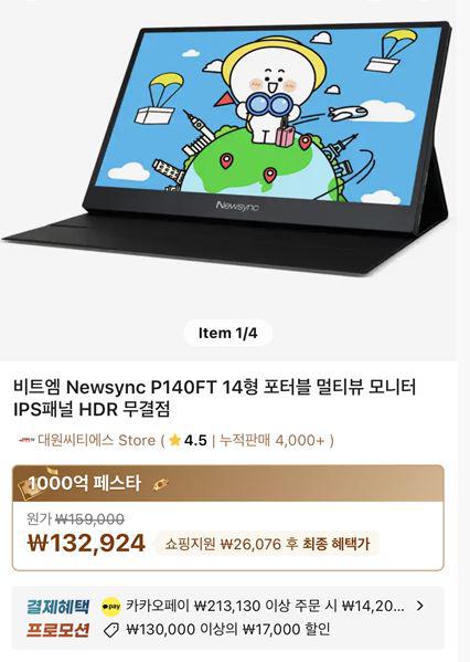 [알리] 비트엠 P140FT 터치 포터블 모니터 할인행사 안내드립니다.