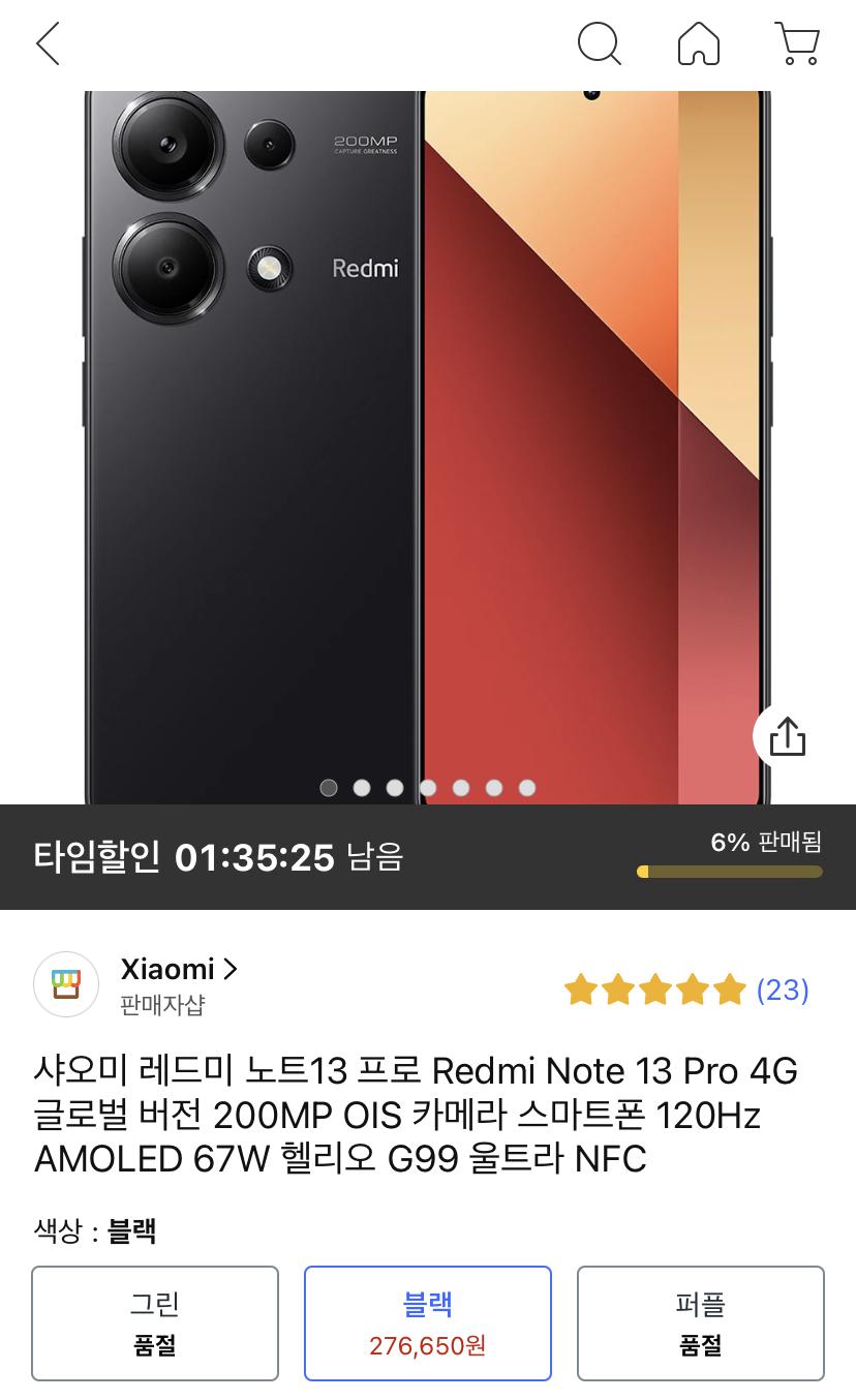 [쿠팡] 샤오미 레드미 노트13 프로 Redmi Note13 Pro 4G 글로벌 버전