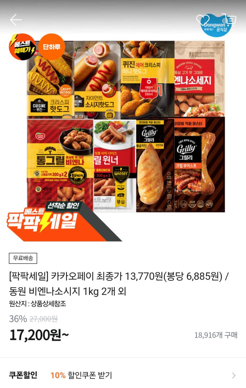 [티몬] 동원통그릴비엔나 소시지 2kg