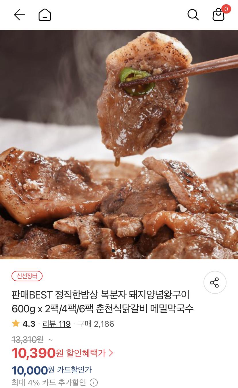 [위메프] 복분자 돼지 양념 왕구이 600g 2팩
