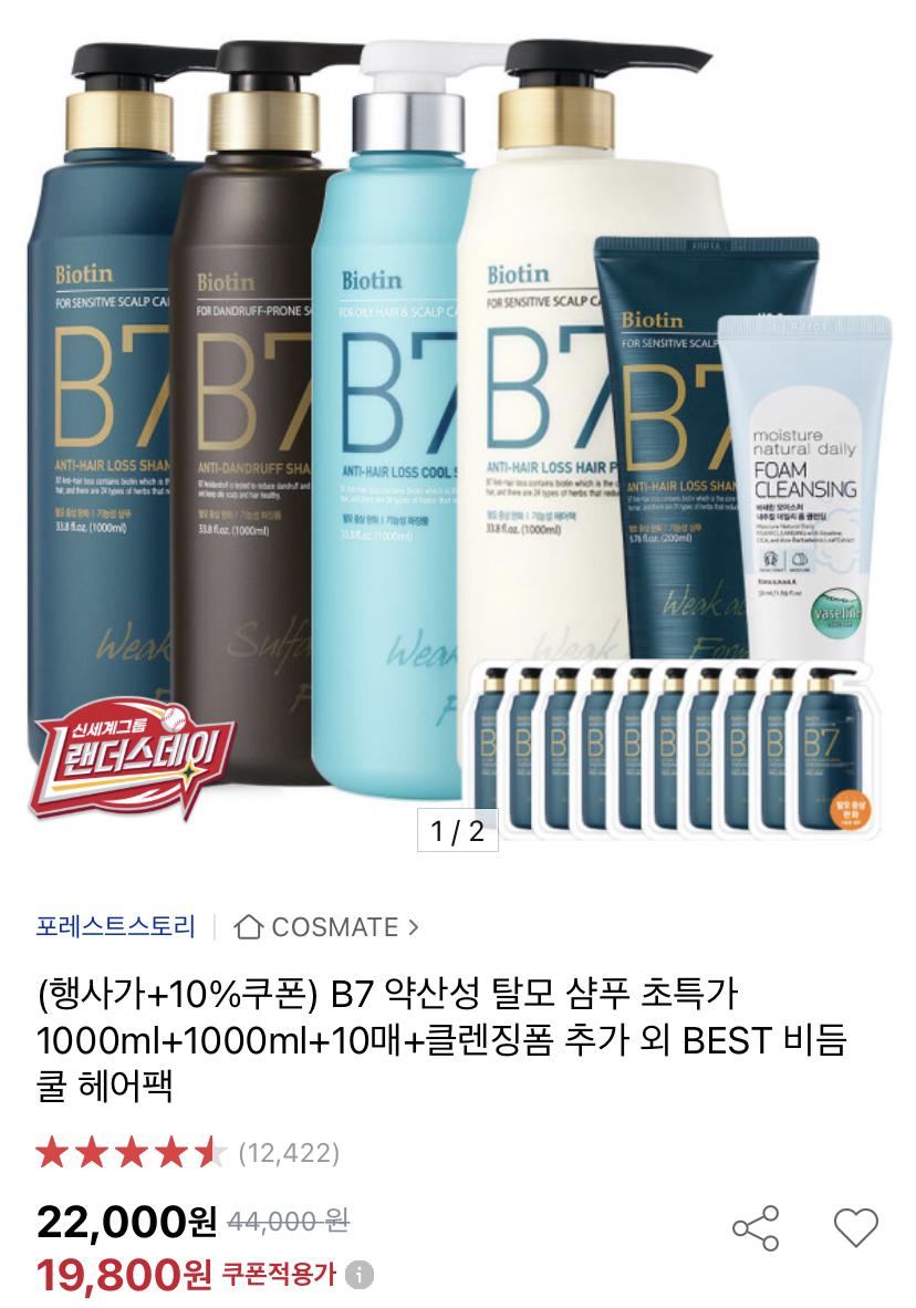[옥션] 포레스트스토리 B7 탈모샴푸 1000ml 2개+10매+클렌징폼