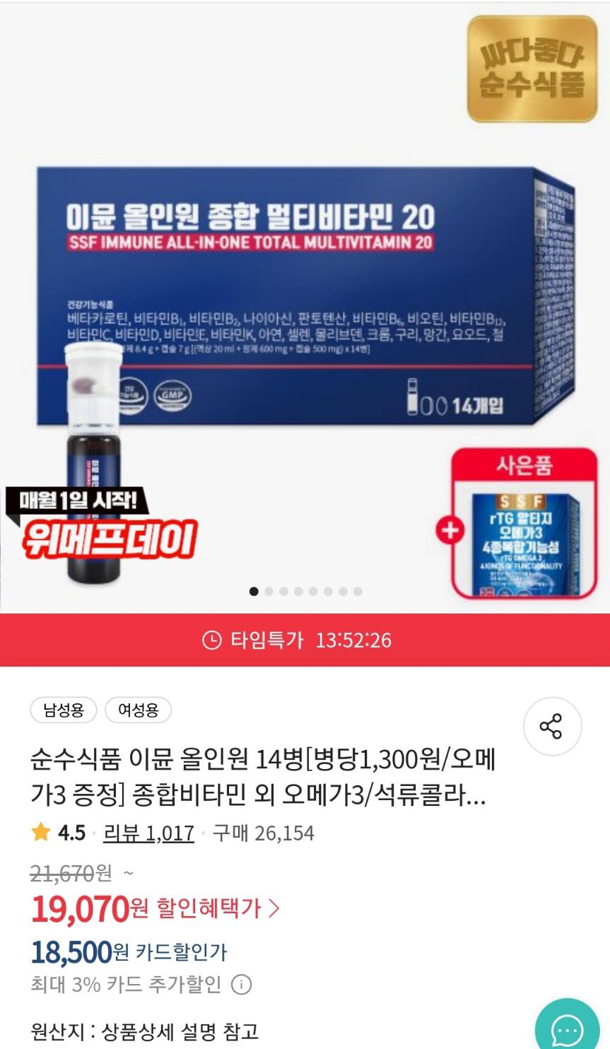 [위메프] 이뮨 올인원 1박스(14병) 종합 멀티비타민+오메가3 1박스증정