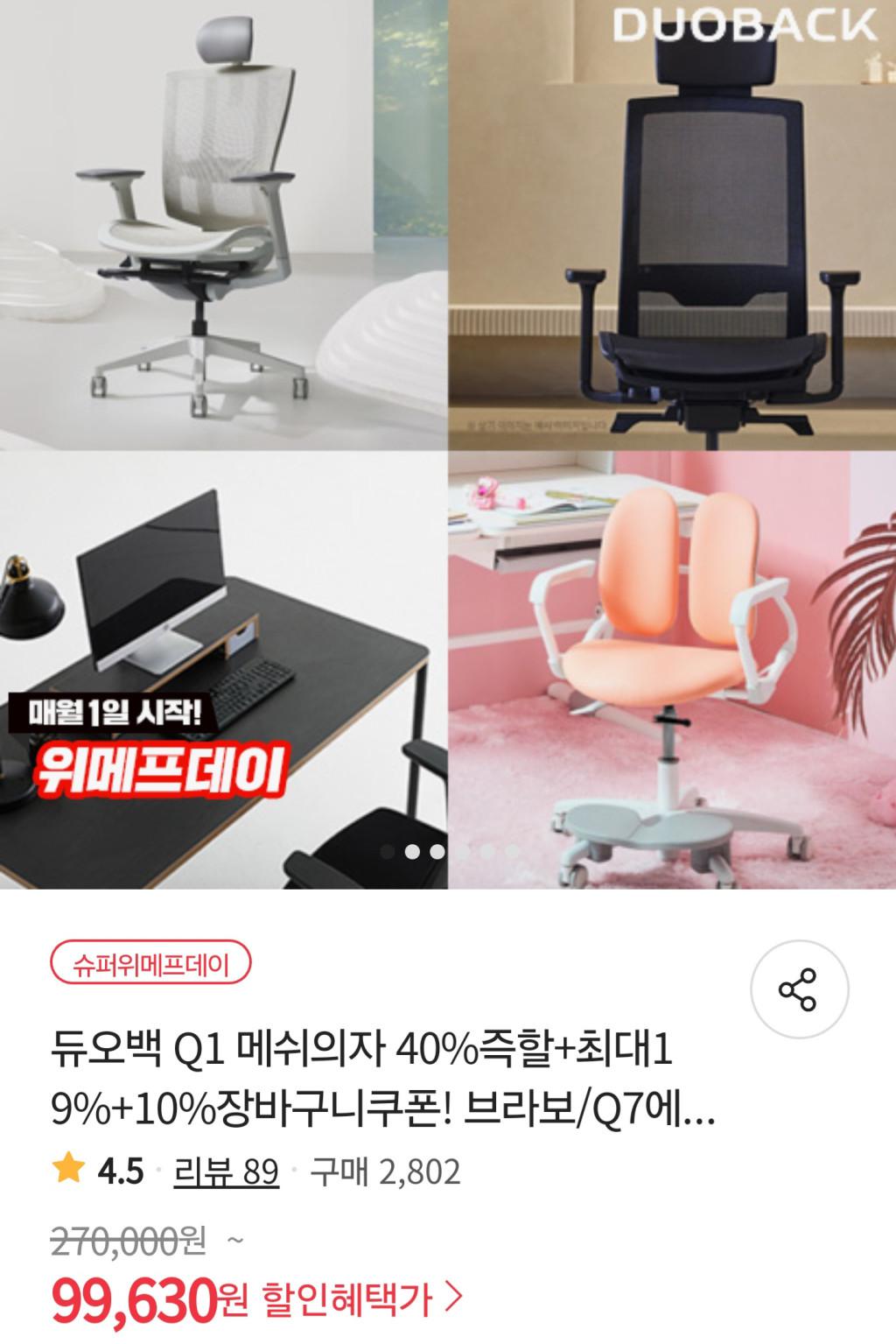 [위메프] 듀오백 Q1 메쉬의자 외 다양 (무배)