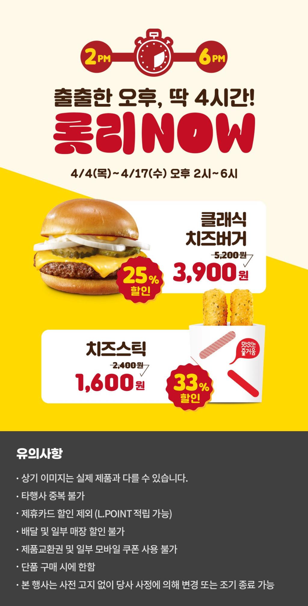 [기타] 롯데리아 4월 롯리NOW! 클래식치즈버거, 치즈스틱 할인