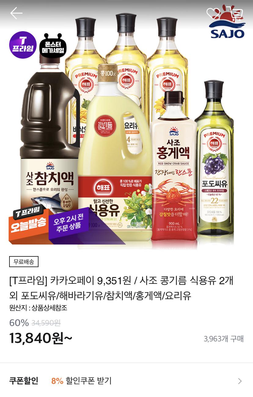 [티몬] 사조 콩기름 식용유 1.8L x 2개
