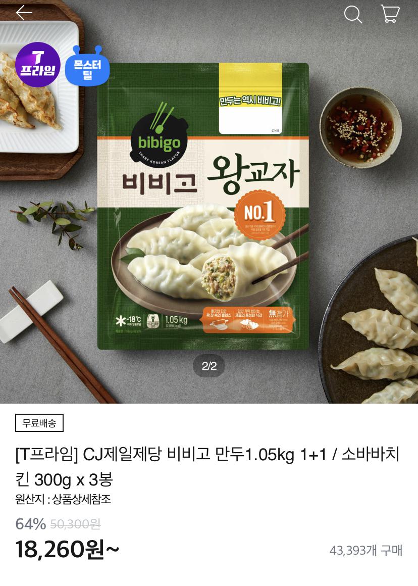 [티몬] CJ비비고 왕교자 만두 1.05KG 2개