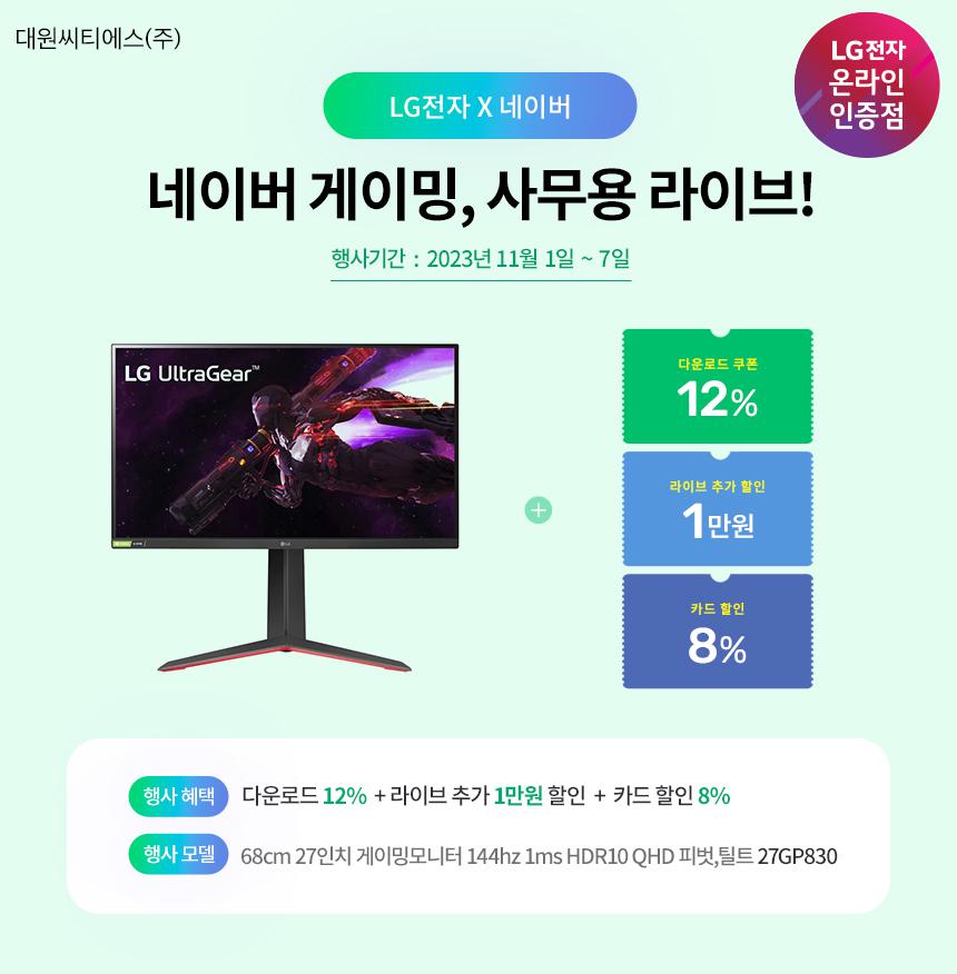 [네이버] LG 브랜드위크 라이브방송! 7시부터 시작되는 혜택! [27GP830]