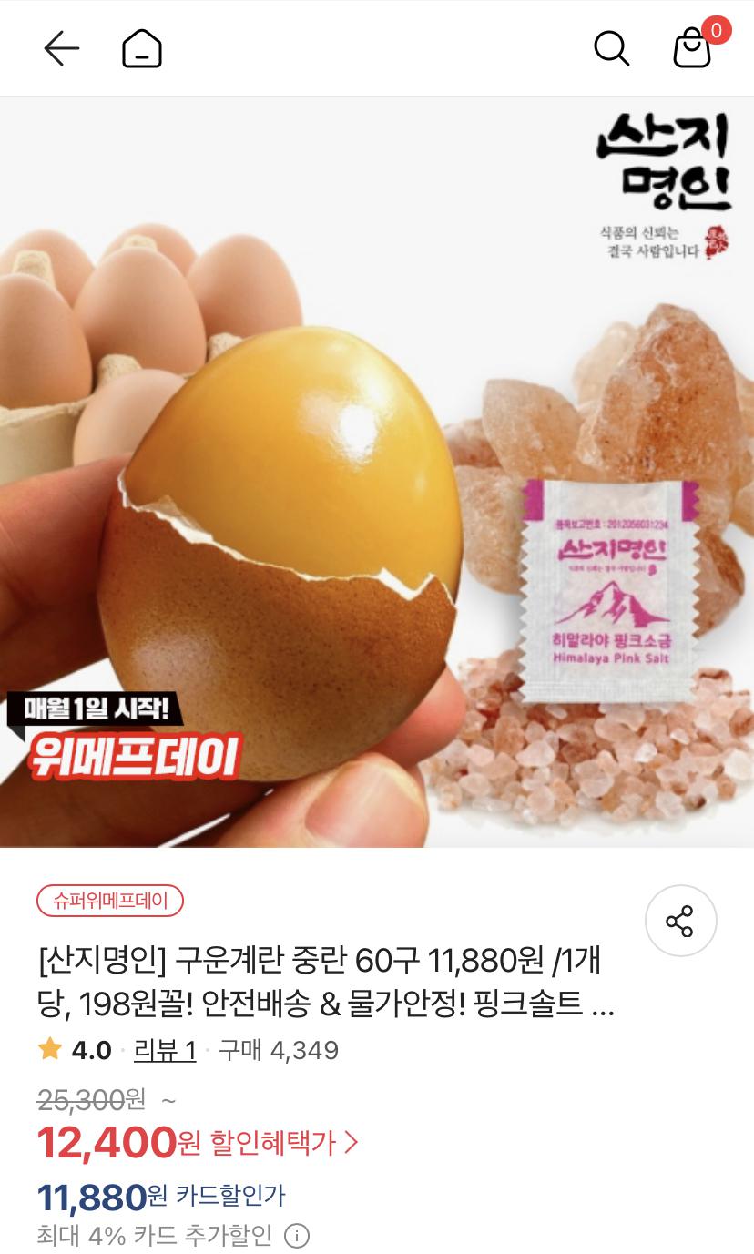 [위메프] 구운계란 중란 60구